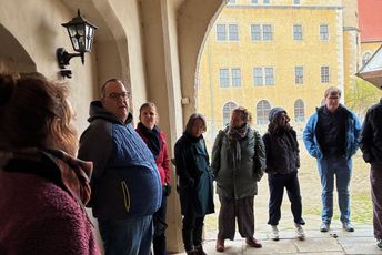 Die Auseinandersetzung mit Nationalsozialismus und Shoah ist wesentlicher Bestandteil der Seminarwoche. Meist werden lokale Erinnerungsorte oder Akteur*innen einbezogen. Diesmal fuhr die Gruppe nach Prettin, um die dortige Gedenkstätte des ehemaligen KZ Lichtenburg zu besuchen und sich mit einer Mitarbeiterin der Gedenkstätte über aktuelle Herausforderungen der Gedenkstättenarbeit, insbesondere mit Jugendlichen, auszutauschen. Ein Workshop vertiefte die Auseinandersetzung mit der NS-Geschichte und dem Phänomen des „Sekundären Antisemitismus“, der sich nach 1945 herausbildete und durch eine Abwehr der Erinnerung gekennzeichnet ist. Zurück in Wittenberg begaben sich die Teilnehmenden auf einem selbstgestalteten Stolperstein-Spaziergang: Auf den Spuren ehemaliger jüdischer Bürger*innen der Stadt gedachten sie der Verfolgten und putzten einige besonders verschmutzte Stolpersteine.