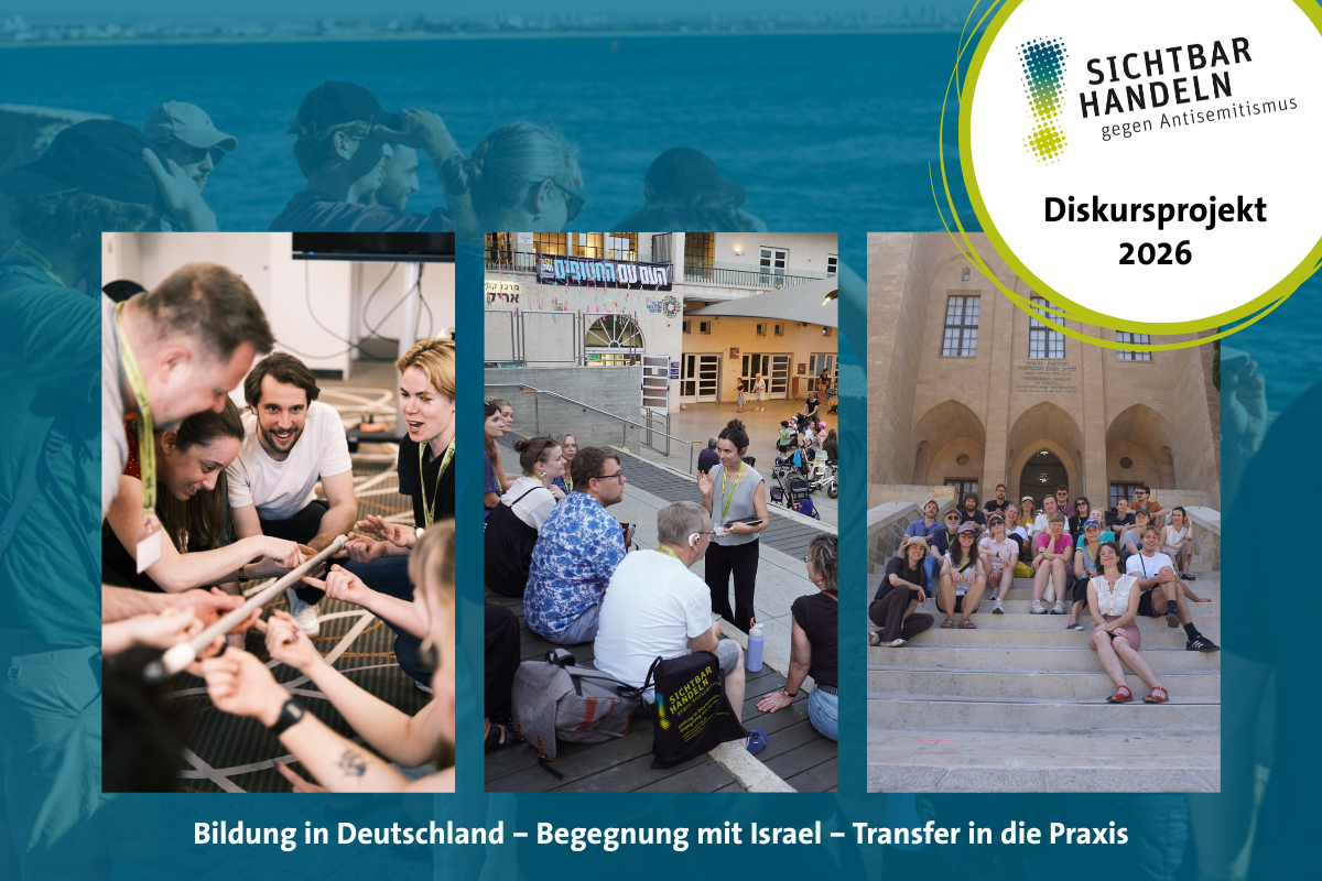 Das Diskursprojekt „Sichtbar Handeln! Umgehen mit Antisemitismus in Jugend- und Bildungsarbeit“ ist ein fachliches Lern- und Diskursangebot zur Arbeit gegen Antisemitismus sowie Israelfeindschaft und verbindet Einheiten zum Wissenserwerb, zur Selbstreflexion und zum Perspektivwechsel. Das Angebot besteht aus drei obligatorischen Modulen: einem einwöchigen Seminarteil in Deutschland (Modul I), einer Begegnungsreise nach Israel (Modul II) und einem Seminar zum Wissenstransfer in die Praxis (Modul III).