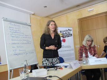 Neben dem Gedankenaustausch zur laufenden Arbeit und zu Förderfragen wurde der Blick aller bereits auf das Jahr 2015 gerichtet, in dem es zwei wichtige Jahrestage geben wird: Am 27. Januar wird sich die Befreiung des Konzentrations- und Vernichtungslagers Auschwitz zum 70. Mal jähren und ferner werden 50 Jahre diplomatische Beziehungen zwischen Deutschland und Israel gefeiert werden. Beiden Themen wurde je eine Arbeitseinheit gewidmet. Dr. Martin Kloke sprach zum Jubiläum der diplomatischen Beziehungen und stellte in diesem Zusammenhang die Geschichte dieser besonderen Beziehungen mit all ihren Herausforderungen dar und versuchte Perspektiven aufzuzeigen. Dr. Andrea Genest richtete in ihrem Vortrag zu 70 Jahre Befreiung von Auschwitz den Fokus auf die Gegenwartsbedeutung des Holocaust in Deutschland.
