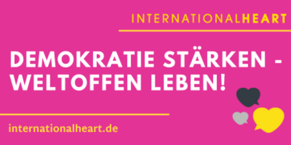 Anfang September bis Mitte Oktober zeigen Fachkräfte, Träger, junge Menschen und Engagierte bundesweit, was internationale Begegnungen bewirken – und warum sie mehr Anerkennung brauchen. Ob Gespräch, Statement oder Story – alles, was rund um #internationalheart passiert, wird sichtbar gemacht: auf Instagram, TikTok, Facebook oder YouTube. Einfach den Hashtag #internationalheart nutzen – und Teil der bundesweiten Social Wall werden. | |