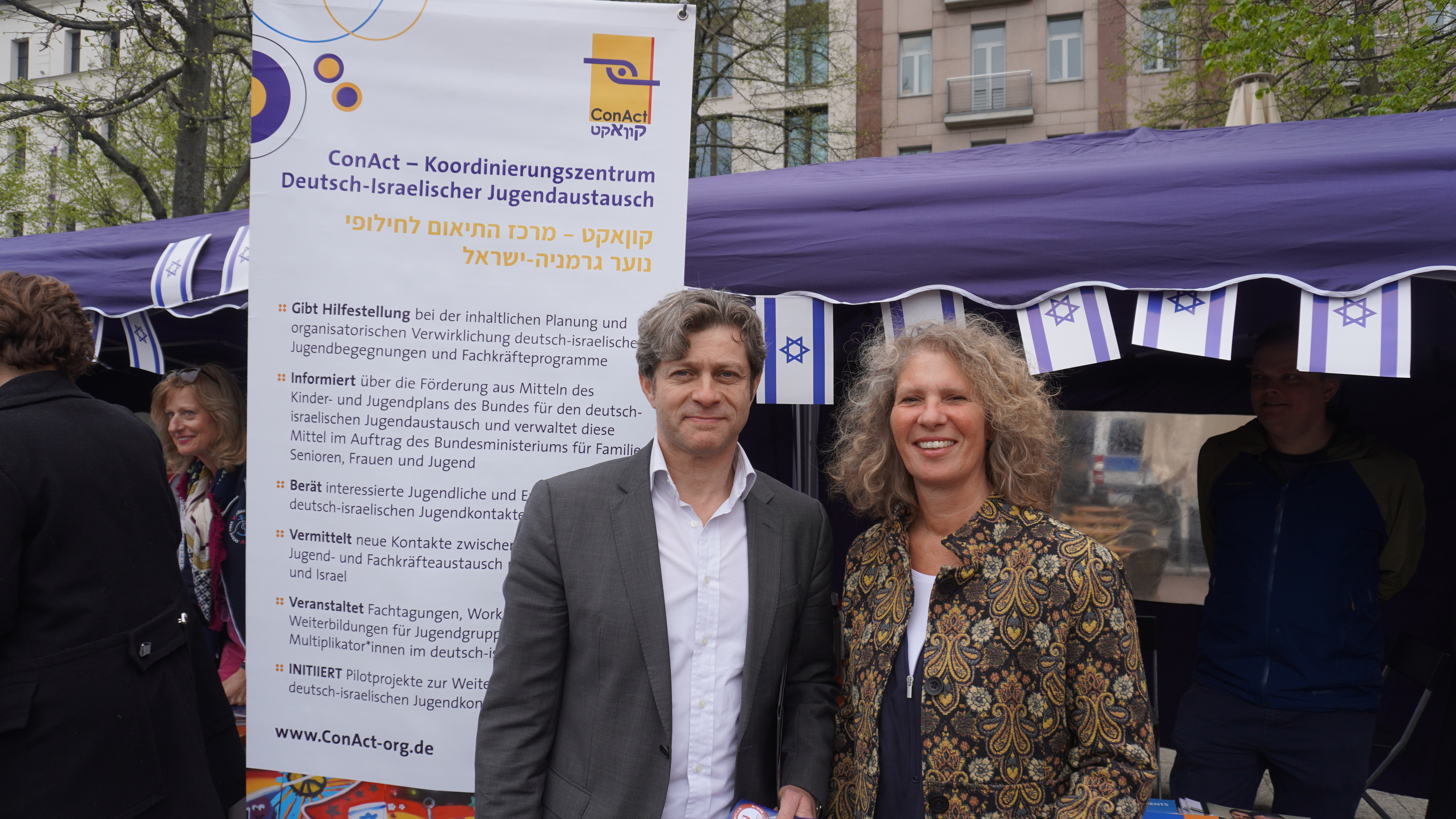 Seit vielen Jahren beteiligt sich ConAct am bundesweit stattfindenden Israeltag, so auch in diesem Jahr. Am 28. April kamen in Berlin zahlreiche Organisationen zusammen, um auf dem Wittenbergplatz ein Straßenfest zu feiern, sich über Israel auszutauschen und sich gegenseitig über die eigene Arbeit und laufende Projekte im deutsch-jüdisch-israelischen Kontext zu informieren.